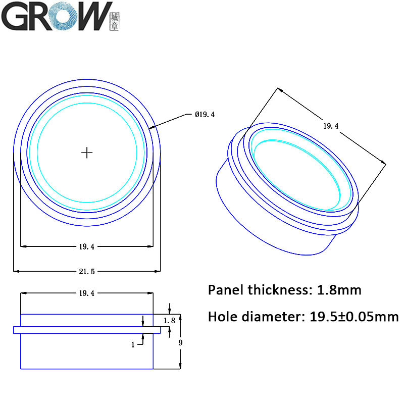 | เส้นผ่านศูนย์กลางภายนอกของโมดูลลายนิ้วมือ: | 21.5มม | เส้นผ่านศูนย์กลางภายในโมดูลลายนิ้วมือ: | 19.4มม |