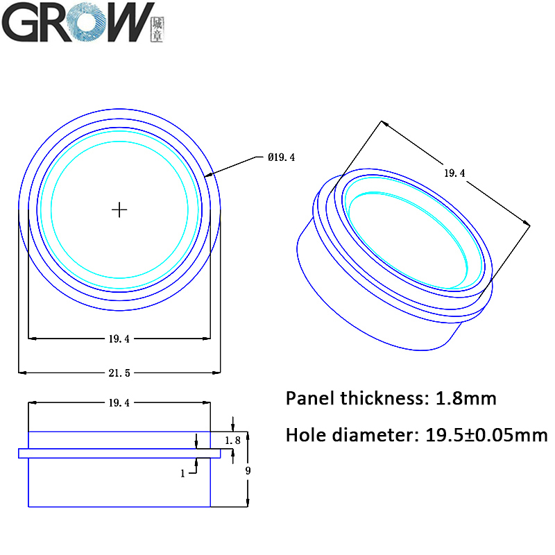 | Fingerprint module inner size | Diameter 19.4 (mm) |